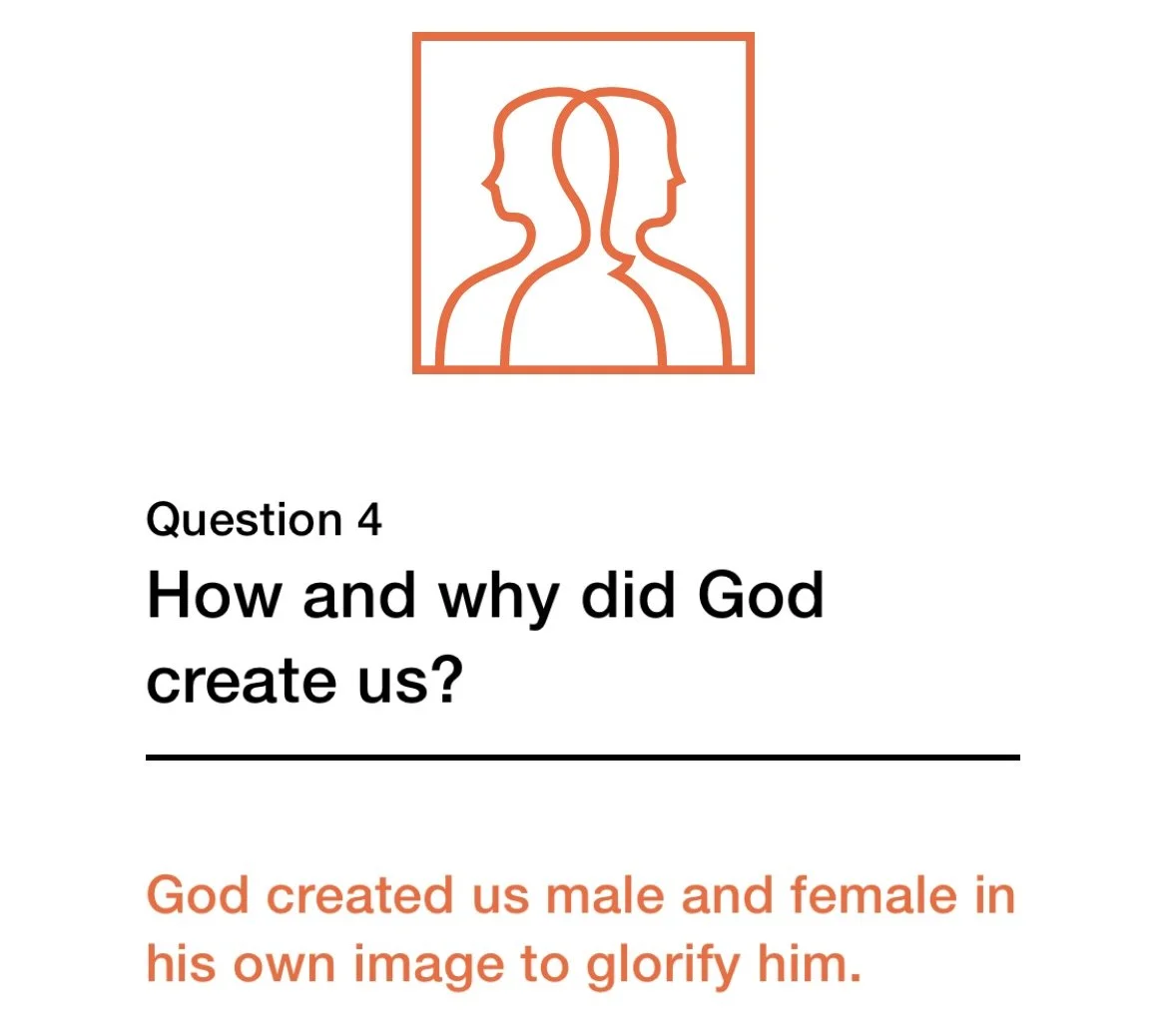 A: God created us male and female in his own image to know him, love him, live with him and glorify him. And it is right that we who were created by God should live to his glory.
